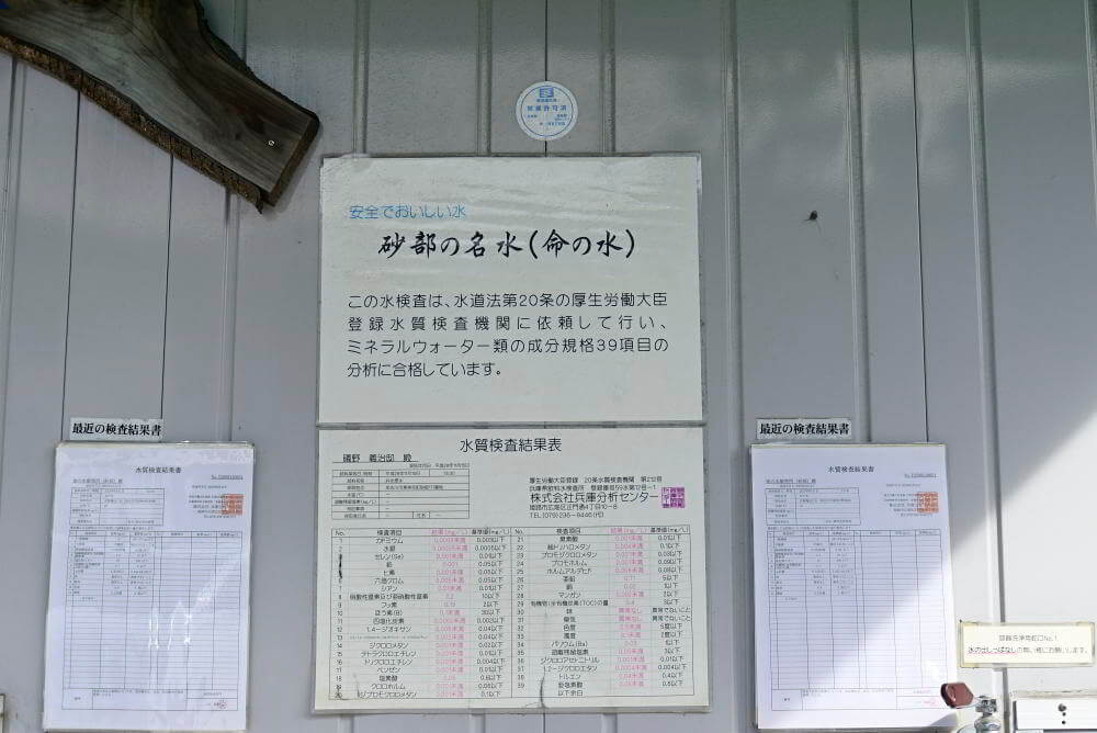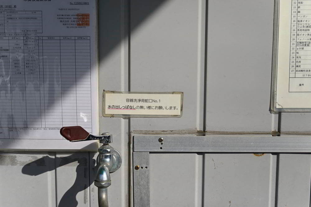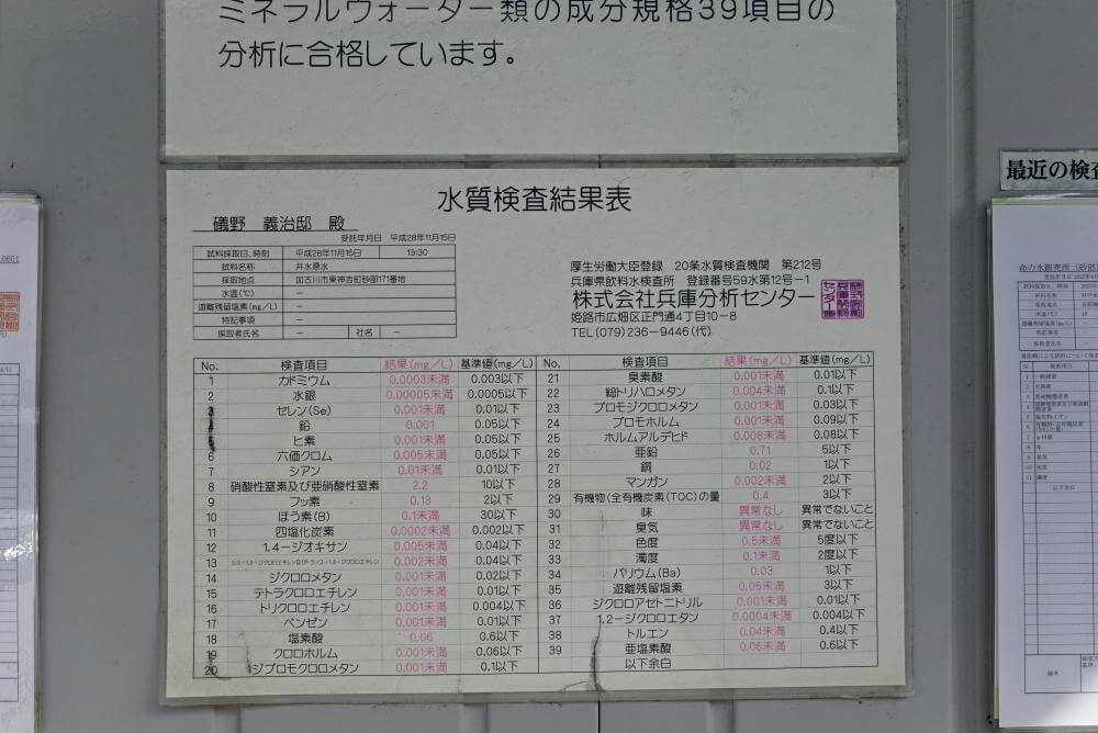 水汲み場には、水質検査結果表が掲示されています。