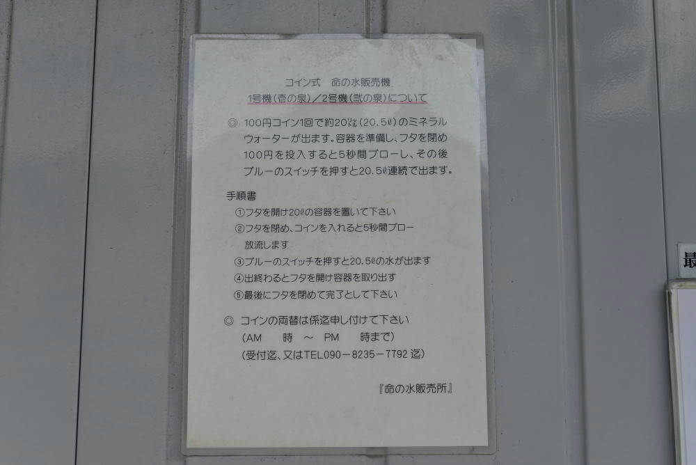 水の汲み方の手順は、給水器の後ろの壁に掲示されていました。