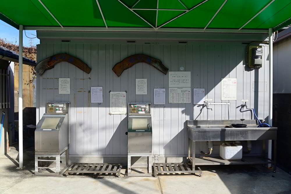 屋根付きの建物に2台の給水機が設置されています。