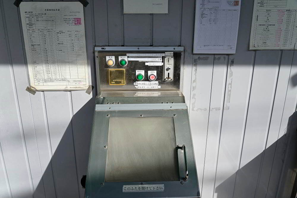 100円で20.5 L のミネラルウォーターを汲むことができます。