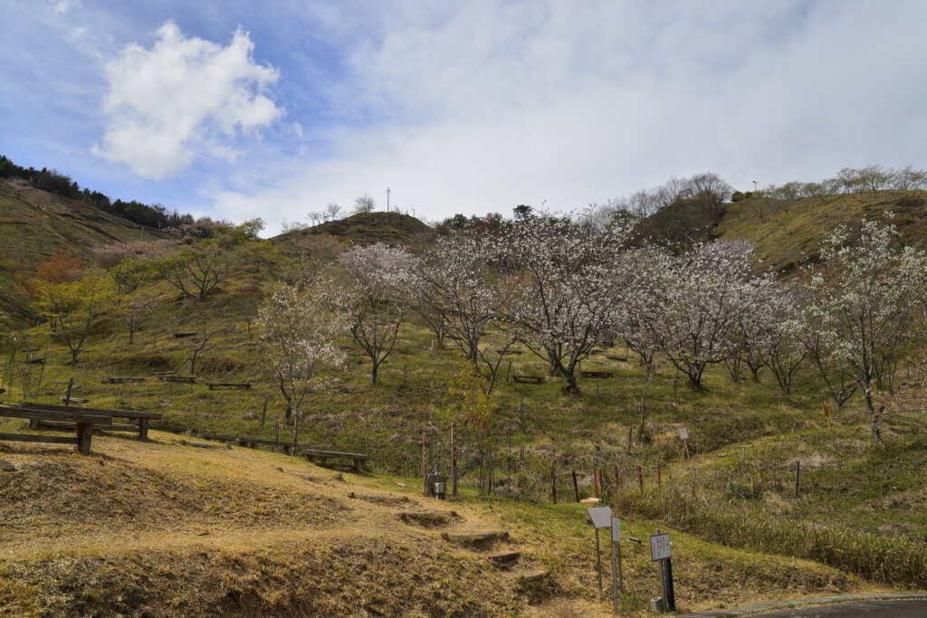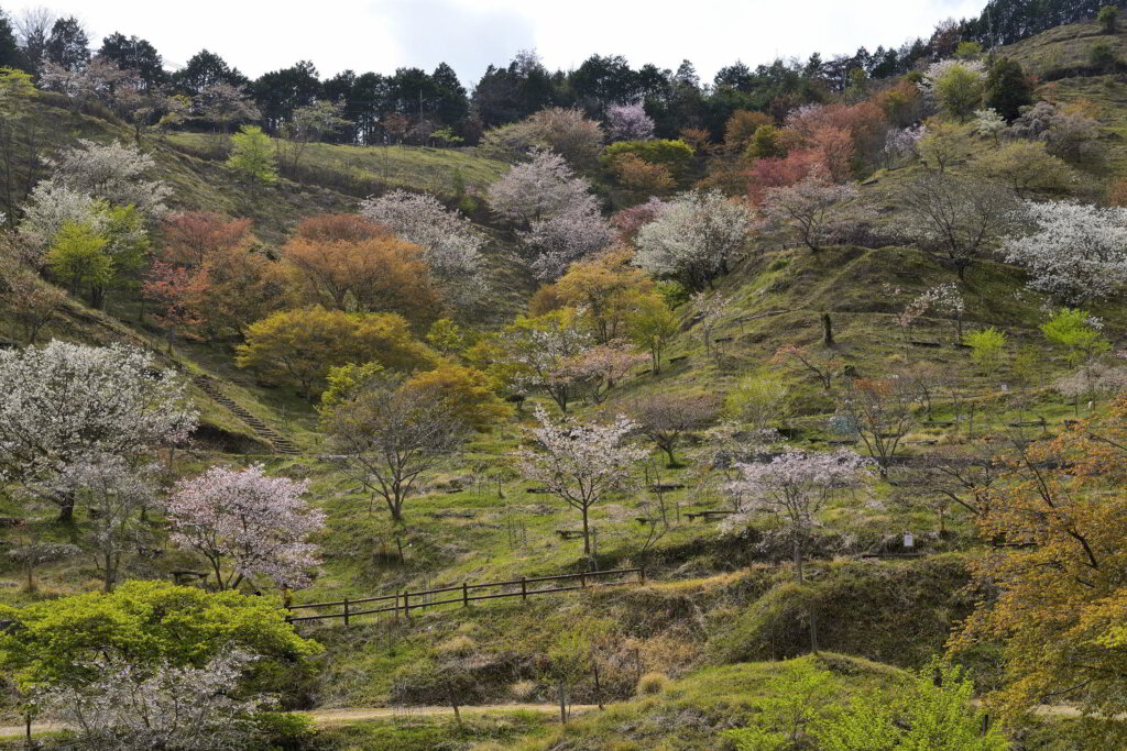 「大嶽山」の山麓15ha(160m~260m)に、関西一多くの品種の桜が植栽されています。