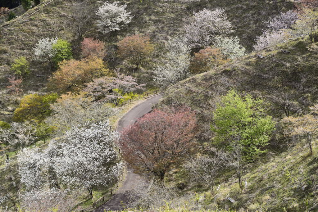 開花時期のちがう様々な種類の桜が植えられているので、全山が満開を迎えるのではなく、順次桜が咲いて行き長い期間にわたって桜が楽しめます。