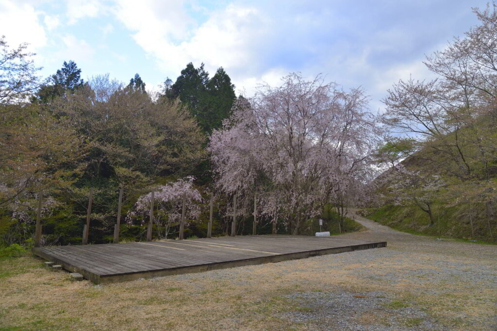 野外ステージの隣には、大きなしだれ桜が咲いていました。