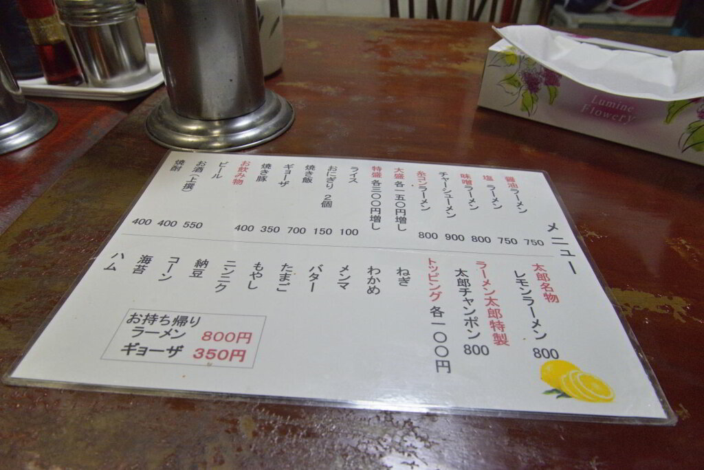 「ラーメン太郎」は、「レモンラーメン」と書かれた赤い看板が目印の老舗ラーメン店です。