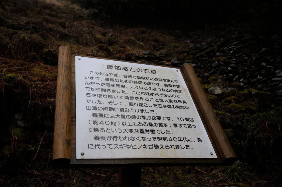桑畑で栽培された桑の葉は、昭和40年代頃まで行われていた養蚕に使われていたそうです。