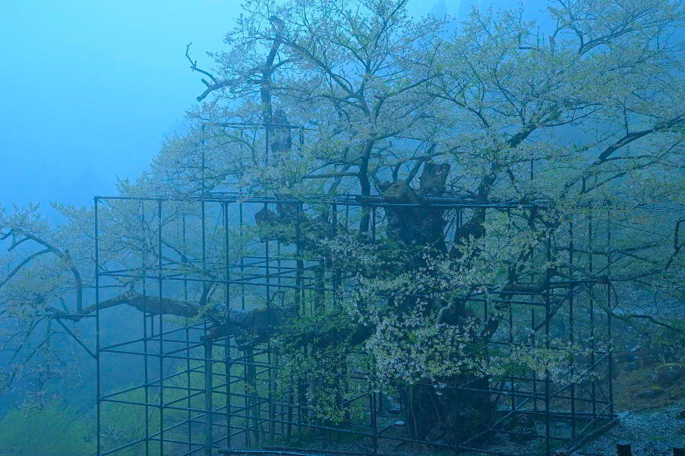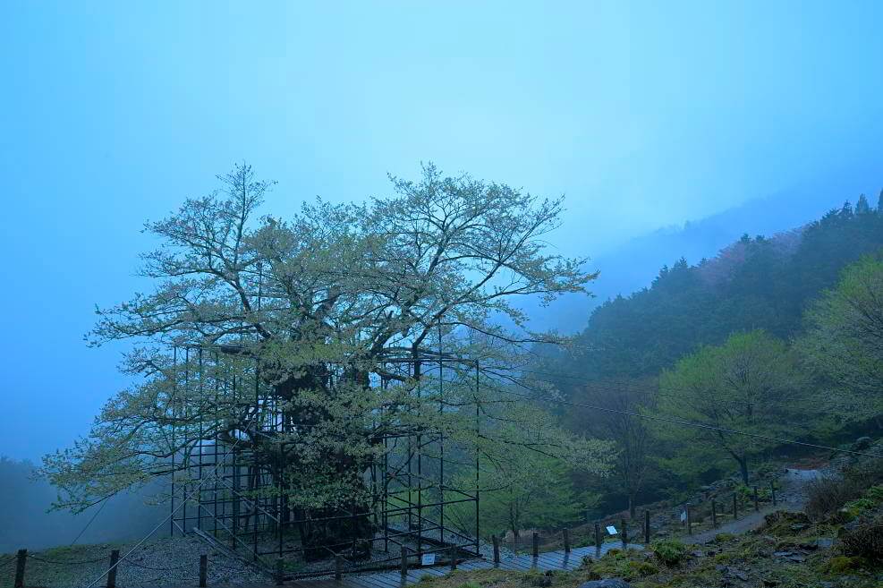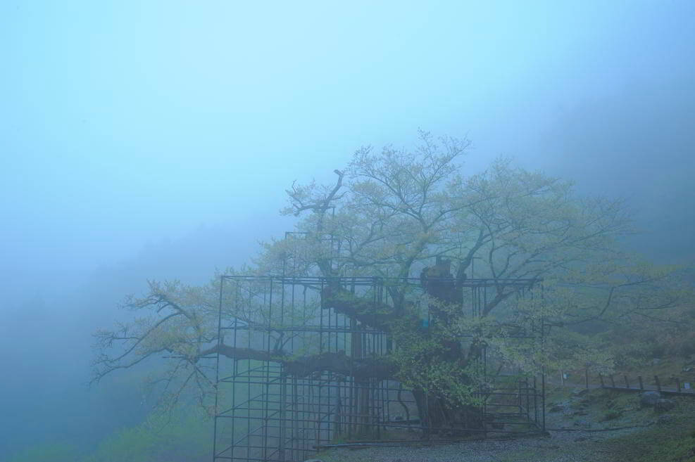 花は散っていても霧の立ち込める山中で四方に枝をのばし、若葉をつけたその姿は幻想的で、その別名もうなずけます。